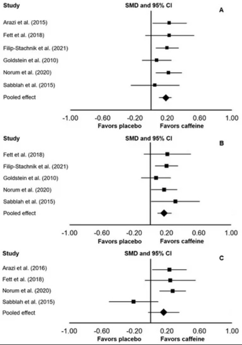- Br J Sports Med. 2020 Jun;54(11):681-688. Wake up and smell the coffee: caffeine supplementation and exercise performance-an umbrella review of 21 published meta-analyses.