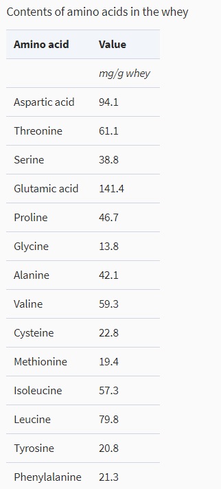 Så här ser fördelningen av aminosyror i vassleprotein ut:5